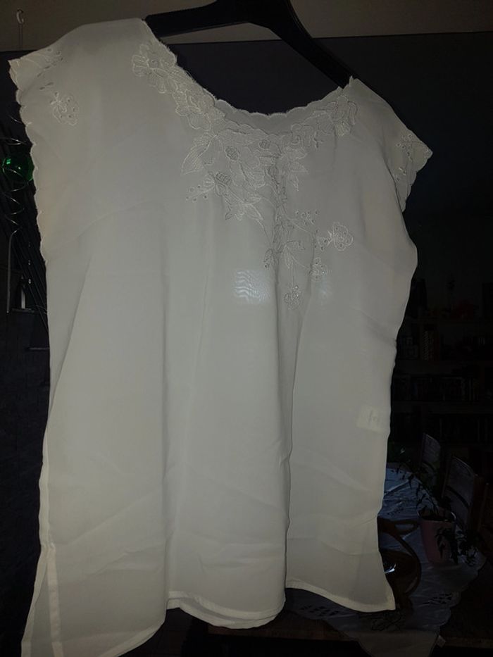 Tee shirt blanc fluide motifs dentelles. Taille 38/40.