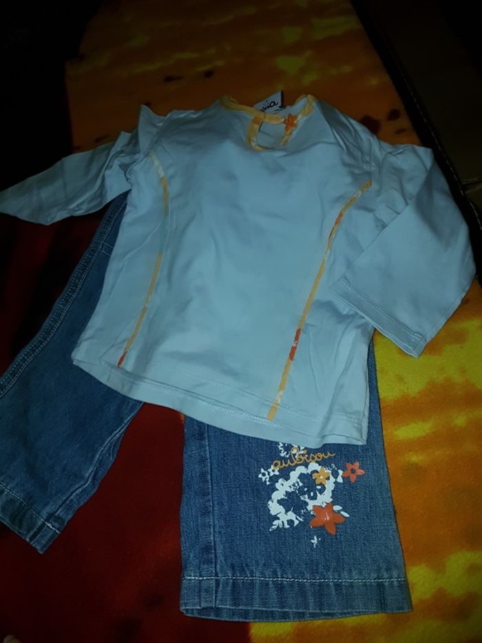 Ensemble 2 pièces : Jean + tee shirt manches longues bleu. C'est les soldes hésitez pas à me faire des propositions raisonnables et faîtes des lots aussi. 😉