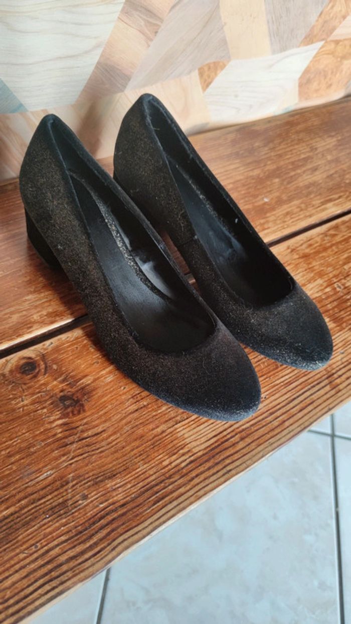 Chaussures velours noir pailleté doré neuve jamais portée. Taille 38