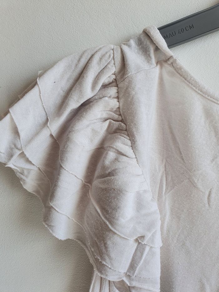 95 % coton 5% elastane 3 épaisseur au niveau des manches Très long , presque une tenue de nuit. Mieux que bon état