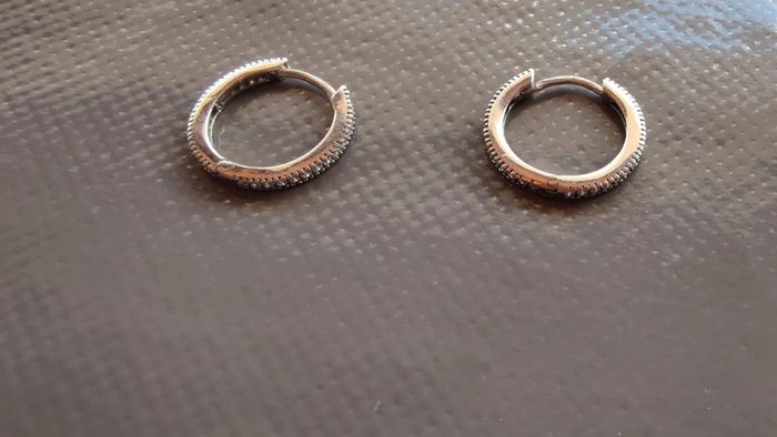 Boucles d'oreilles créoles avec petites pierres. Jamais porté.