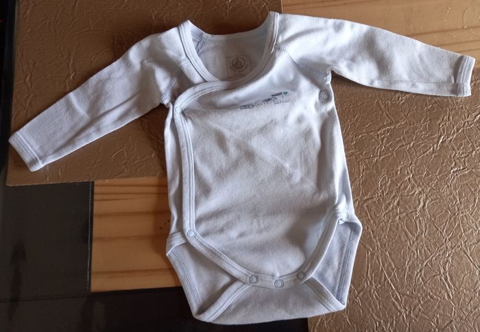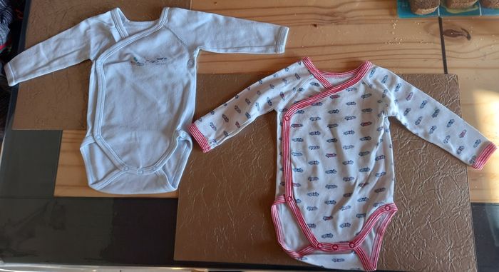 Vends lot de 2 bodys manches longues pour bébé avec ouverture sur le devant Taille 3 mois de marque Petit Bateau en très bon état