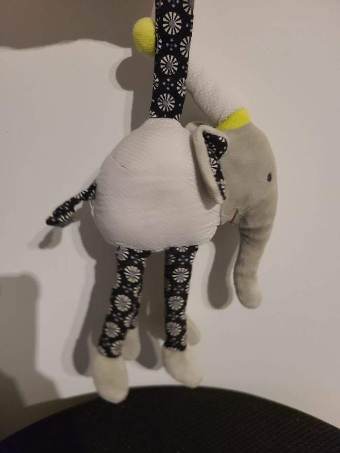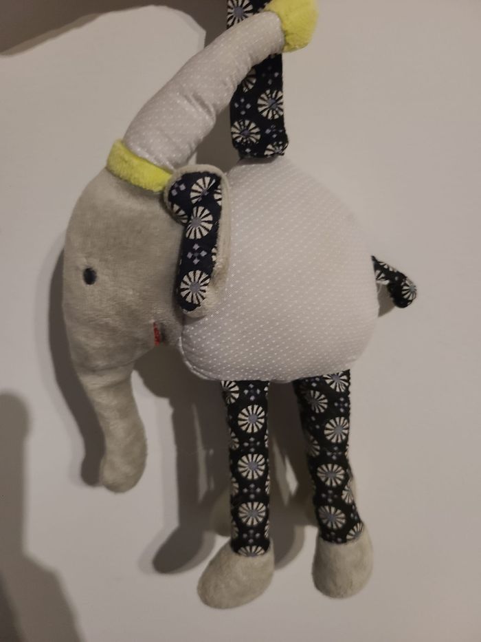 DOUDOU ÉLÉPHANT GRIS VERT NOIR FLEURS POIS DPAM 123