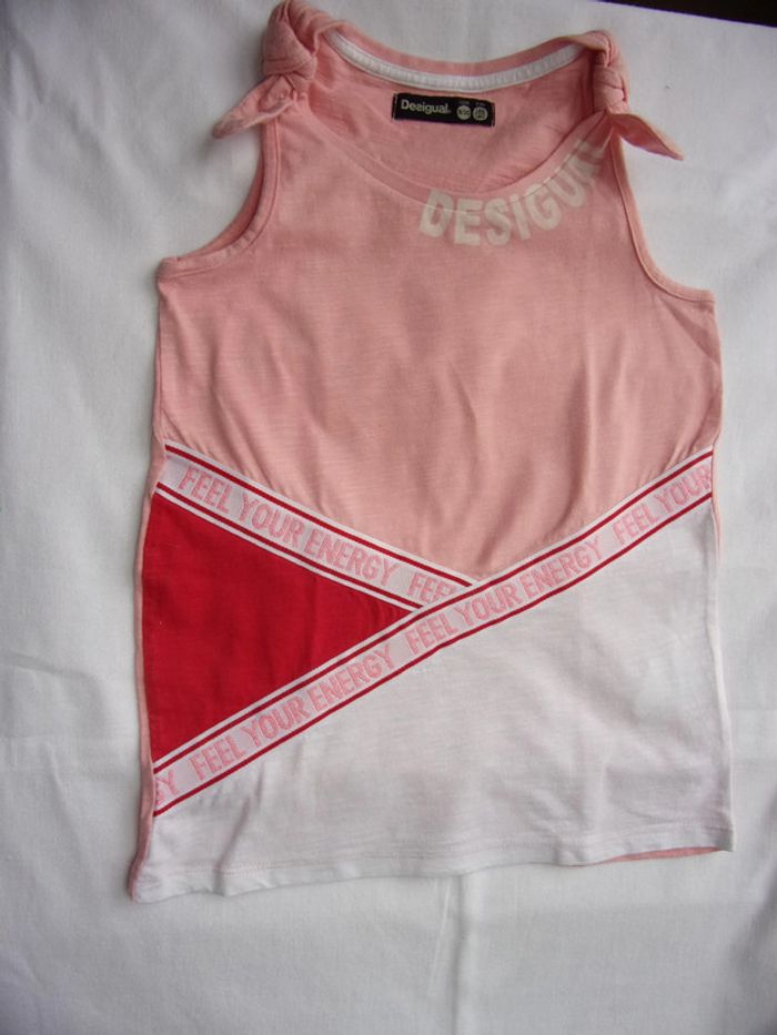 Débardeur - Tunique DESIGUAL 9/10 ans Motif géométrique Couleur rose motif rouge/blanc Noeuds sur les épaules Excellent état