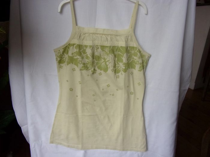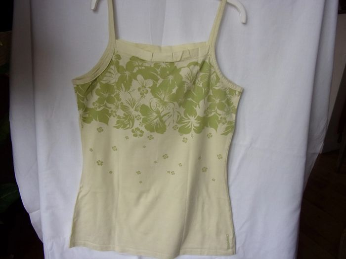Beau débardeur - T.38 TRIBORD Couleur vert anis très clair Avec motif hawaïen Très bonne tenue