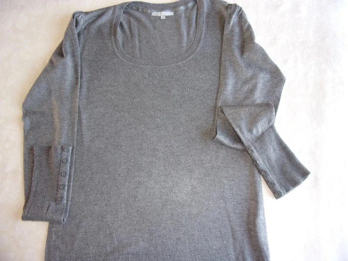 Joli pull ETAM - T.40 Encolure ronde Manches longues avec poignets et boutons 80% Viscose 20% Polyamide Couleur gris moyen Excellent état .. comme neuf