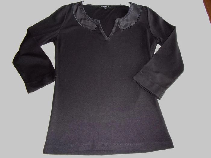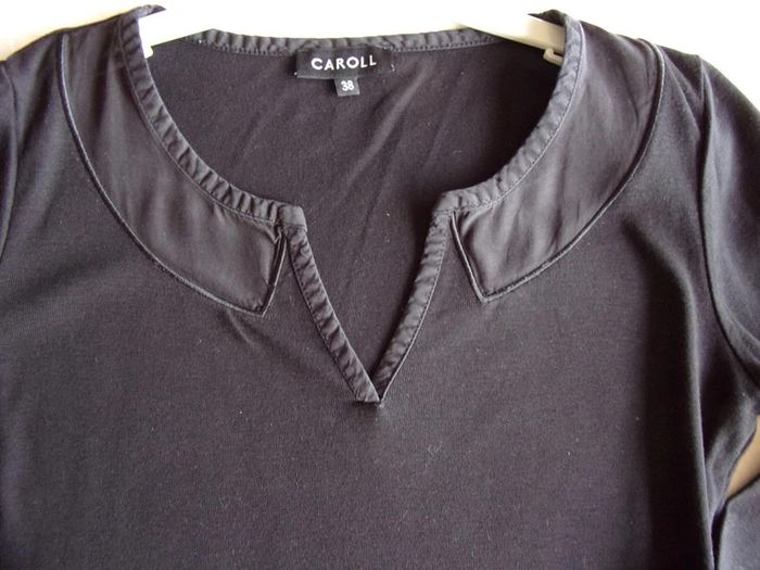 Beau Haut CAROLL - taille 38 noir 50% coton 50%modal Col en V 70% coton 30% soie Manches à revers Excellent état