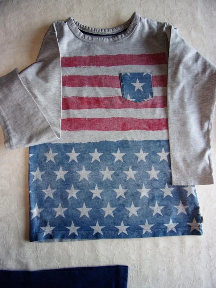T.SHIRT - 8 ans Okaidi - manches longues Style drapeau américain Couleur gris/Bleu/rouge Excellent état