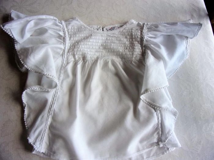 Très beau Chemisier avec volants - 6 ans Tape à l'Oeil Plissé sur le devant volants couvrant les épaules et partant du bas Fermeture dos boutons Pour cérémonie ou autre En excellent état