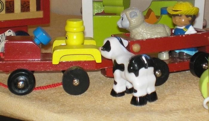 Jouet ancien Tracteur + remorque Bois + animaux + fermier - photo numéro 2