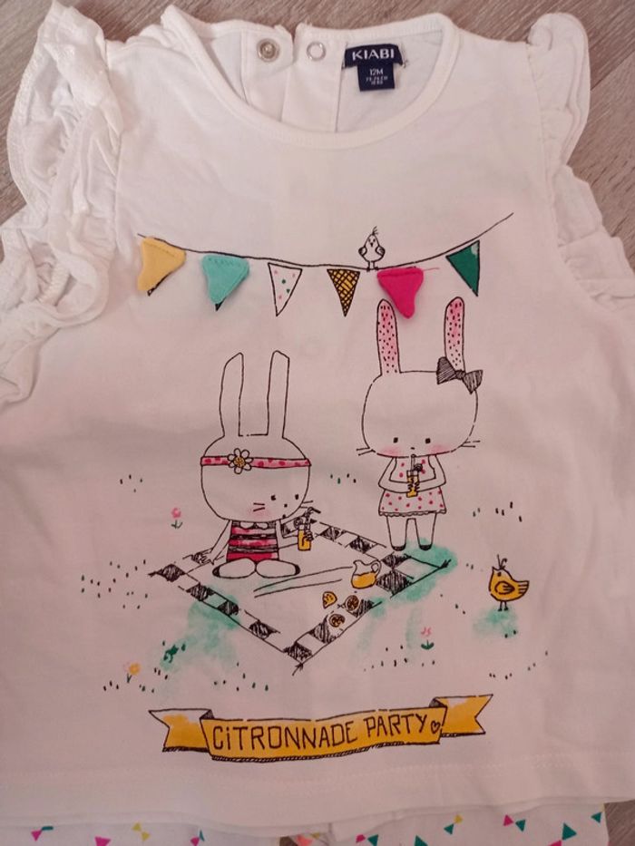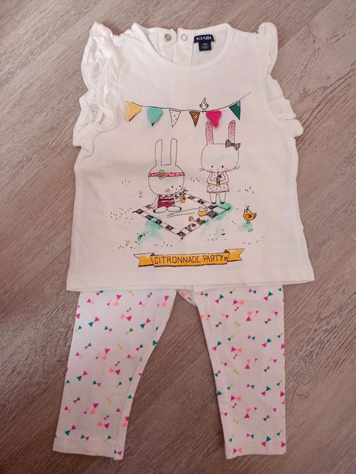 Ensemble legging et tee shirt sans manche qui s ouvre en entier dans le dos. Motif lapin.