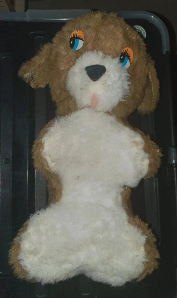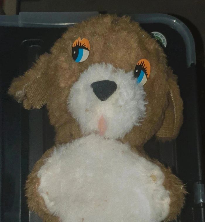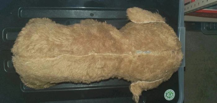 Yeux en papier autocollant (un abîmé cf photo) Corps décousu à l'arrière (cf photo) Intérieur rigide et léger #PeluchesPoupées_flob76000