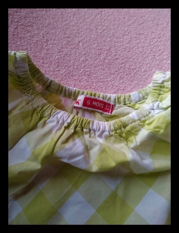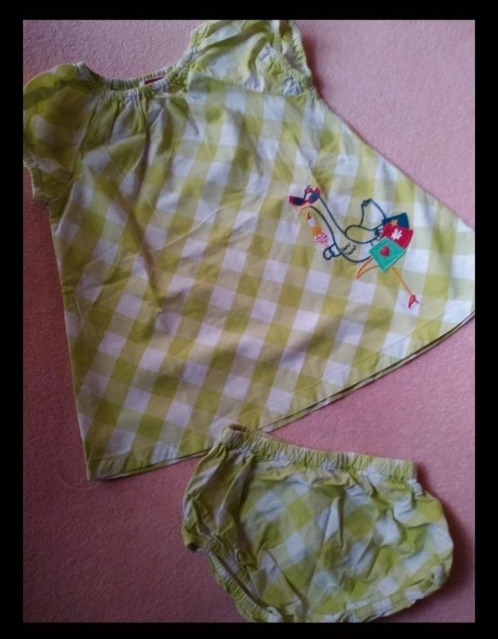 Jolie robe été DPAM Couleurs vichy vert motif autruche en shopping Avec bloomer assortie Taille 6 mois Très bon état