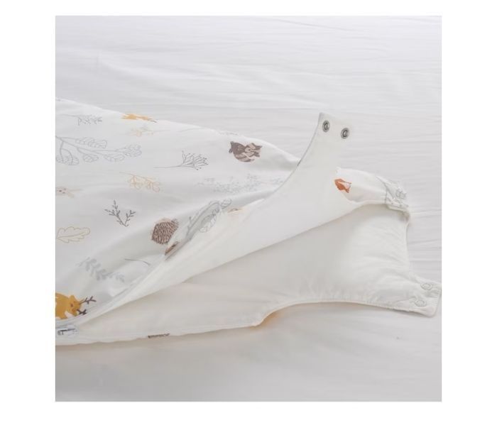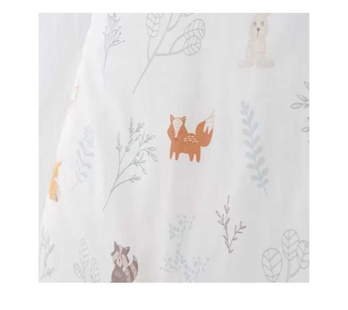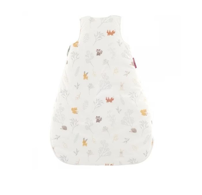 Neuve, jamais portée. Gigoteuse chaude en coton bio imprimée de petits animaux de la forêt et de délicats végétaux. Fond écru. Zip côté pour une ouverture totale. Ouverture aux épaules par double boutons-pression. Doublure en percale unie écrue. TOG 2,5 (chambre entre 18 et 20°).