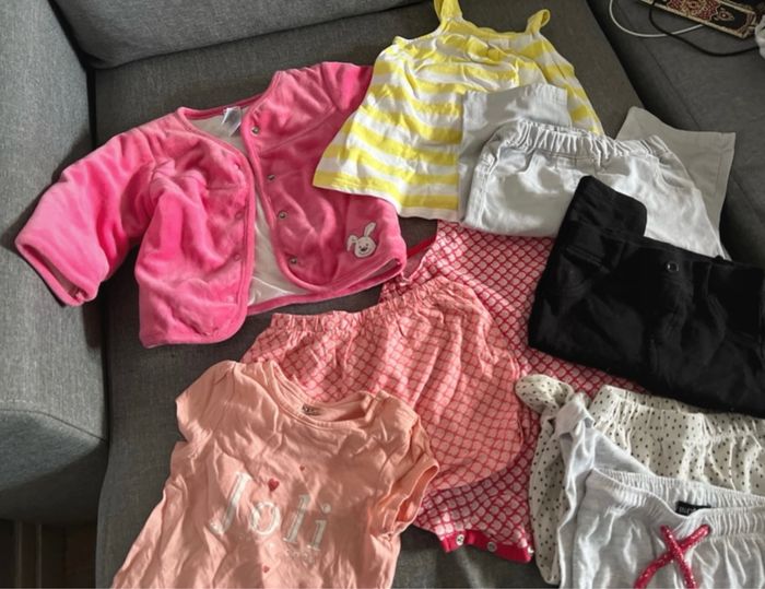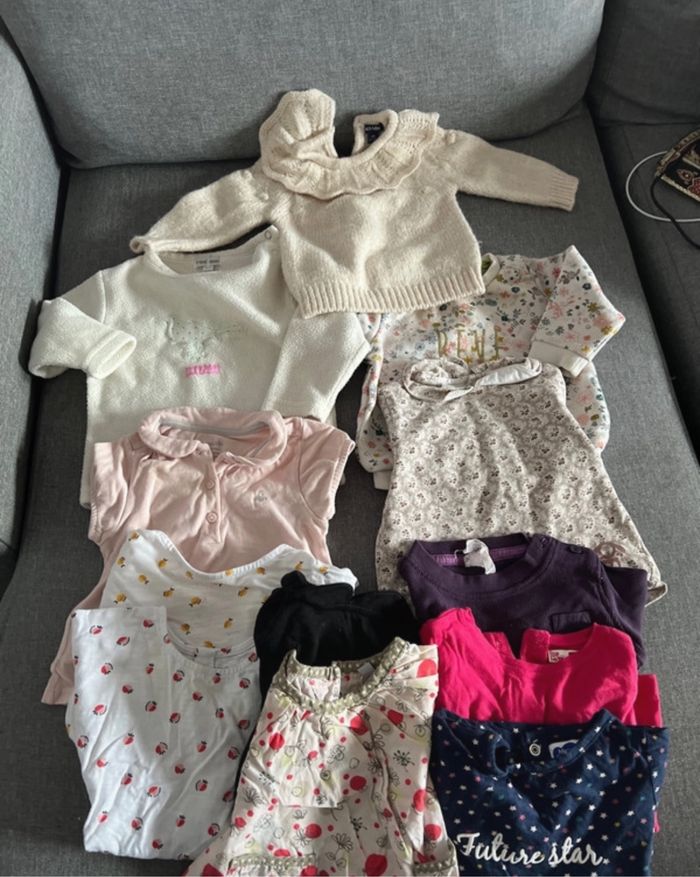 Lot de vêtements fille du 1 mois au 9 mois encore plus de vêtements que sur la photos car pas de place pour tout mettre . Possible main propre sur Lille. Marque KIABI okaidi, verbaudet…