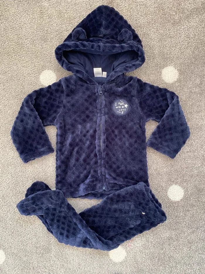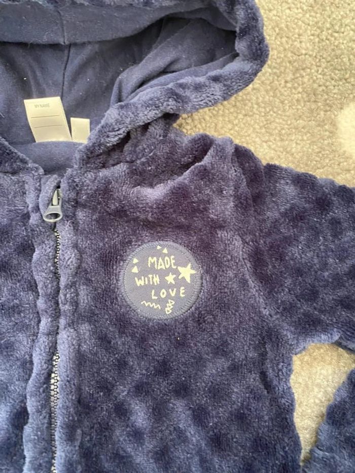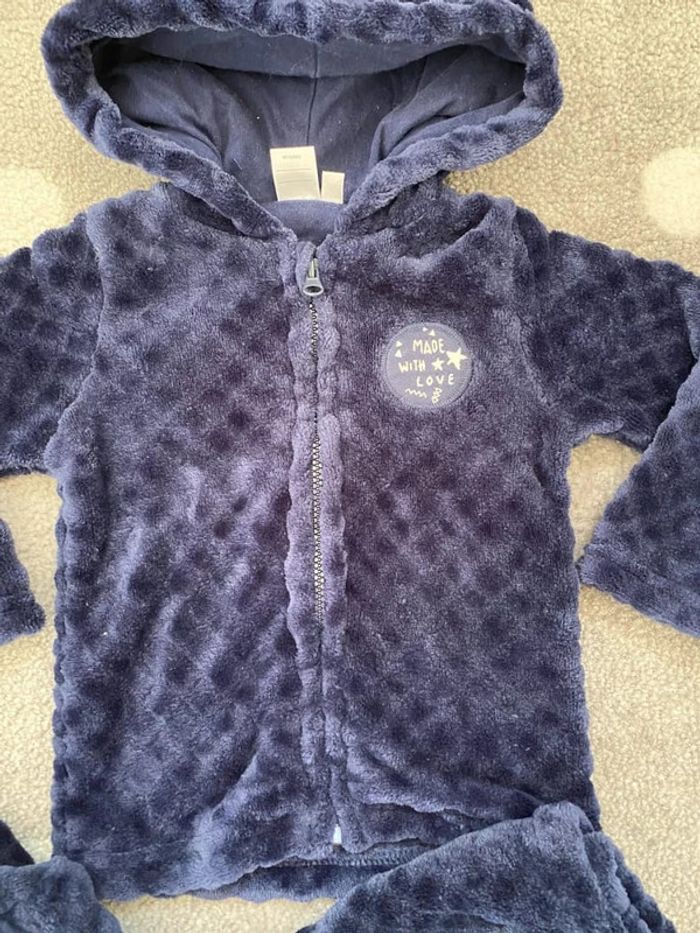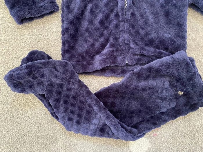 Ensemble en velours tout doux de marque grain de blé. Couleur marine. Composé d’un gilet à capuche et d’un pantalon à pieds. Pression pour attacher le pantalon à la vente. Taille 9 mois. Parfait état, jamais porté. 🌸Réduction sur les lots activée, n’hésitez pas à visiter mon dressing. #ktl06enfant9mois
