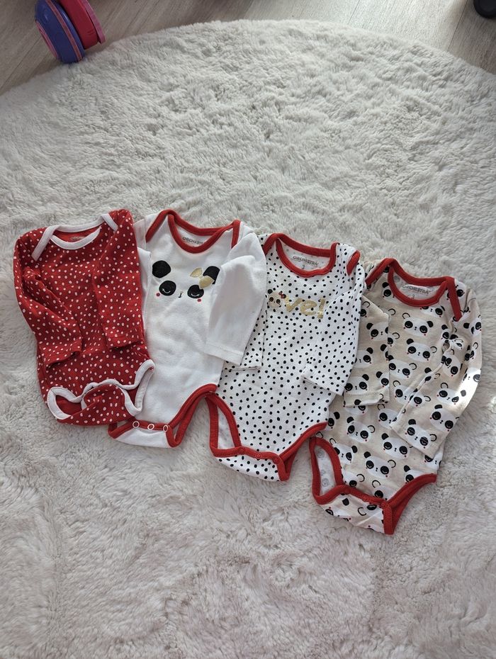 Lot de 4 bodies manches longues Très bon état 3 mois 60 cm J'en donne un en plus des 4 ( car tâche à l'arrière)