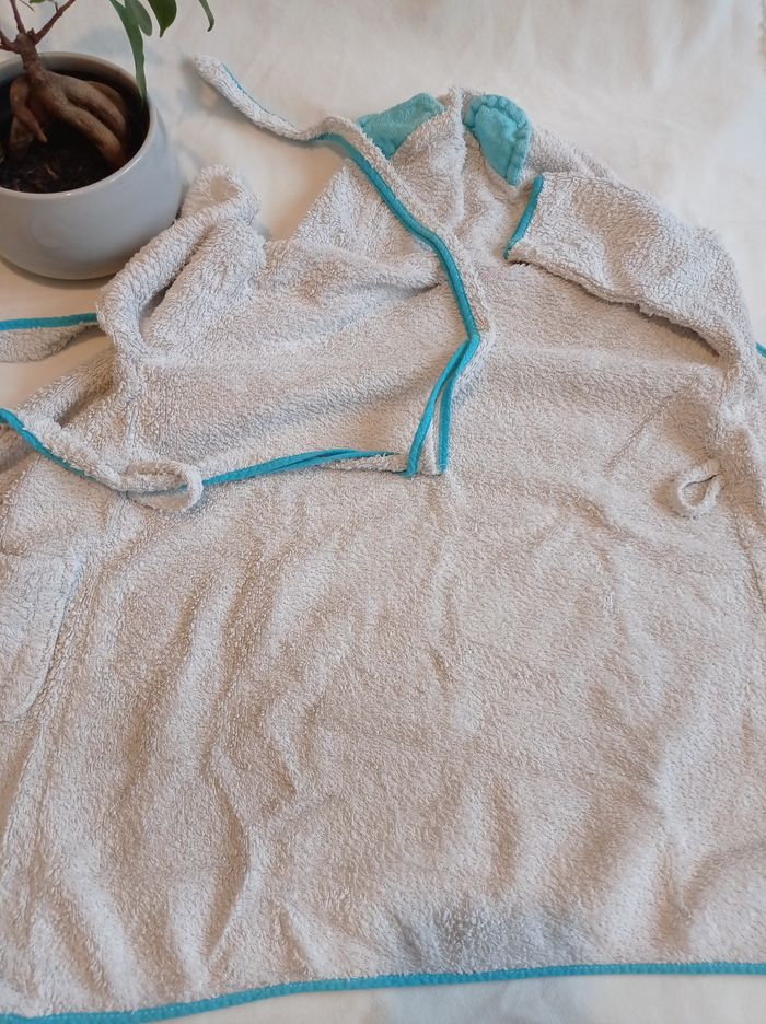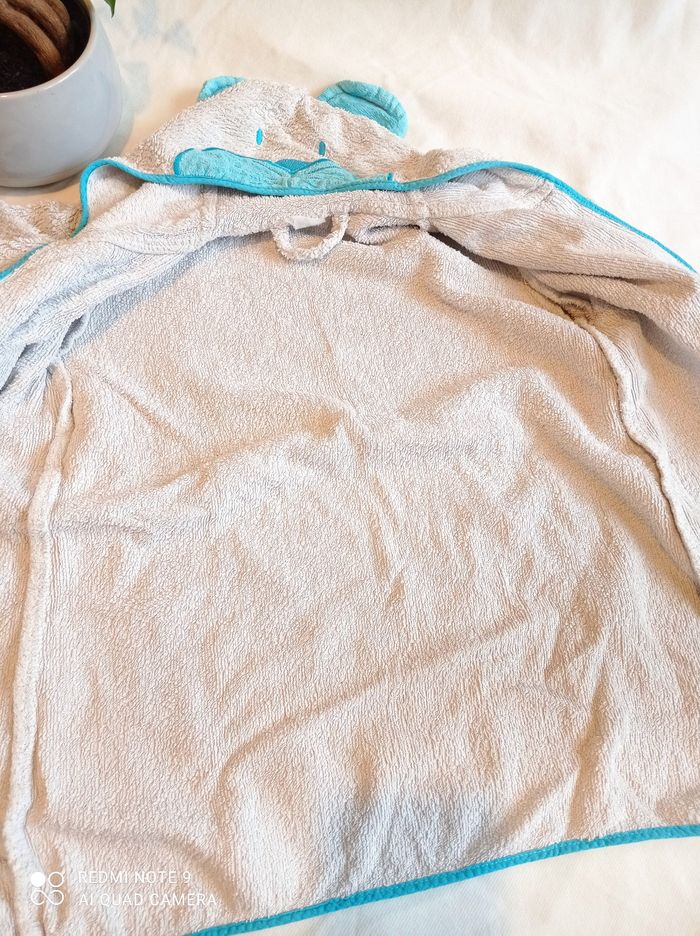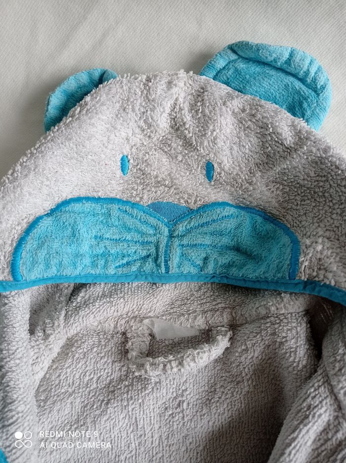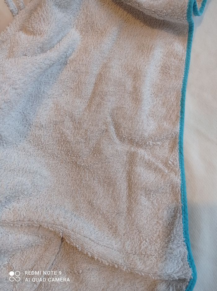 Peignoir 18/24mois Il ya une grande tâche derrière (dernière photo, on ne voit pas trop ,selon la lumière on ne vois pas) Sinon très bon etat