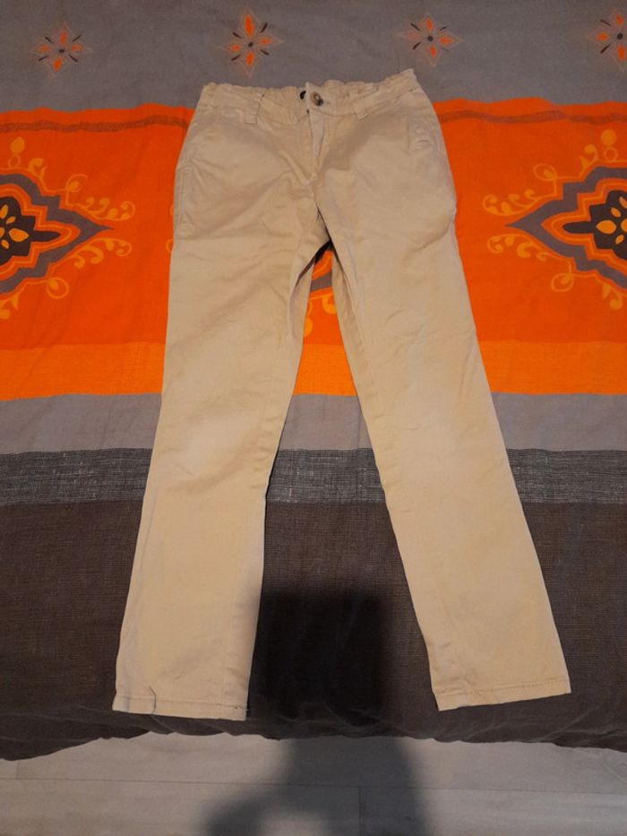 Pantalon, se ferme à la taille avec un bouton + fermeture éclair. Taille 8 ans, marque kiabi, très bon état.