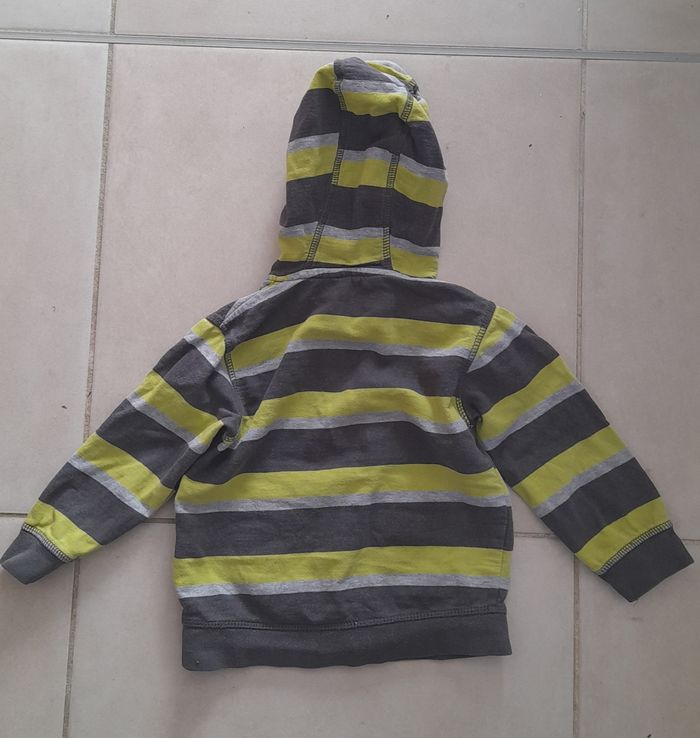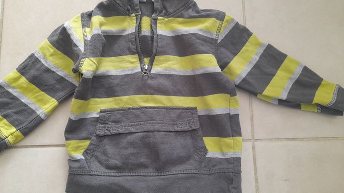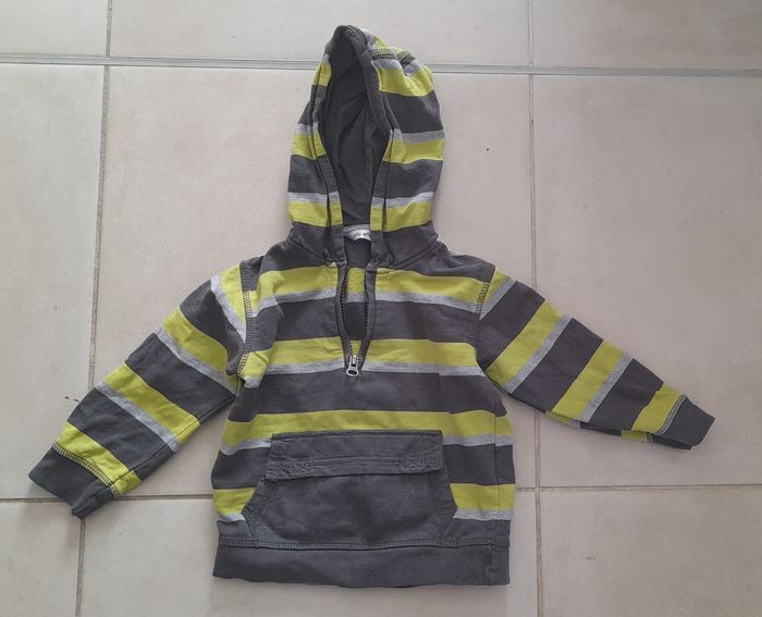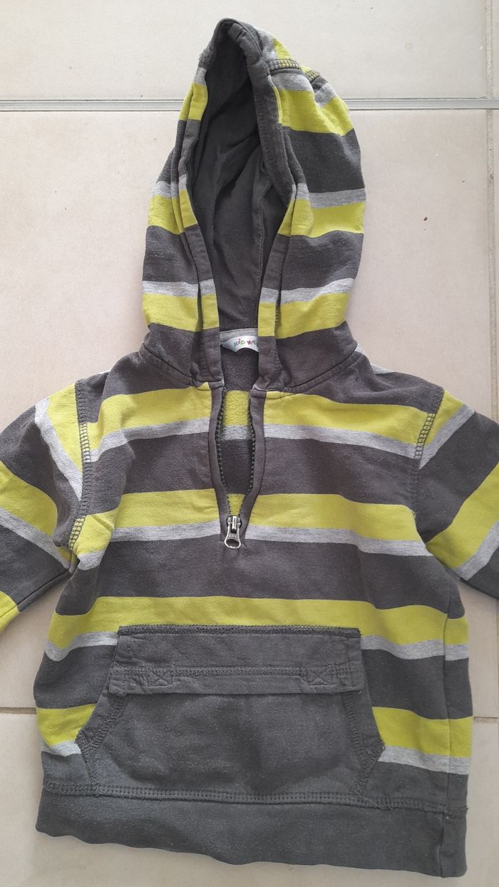 Sweat demie saison Capuche. Poche kangourou devant. A rayures.