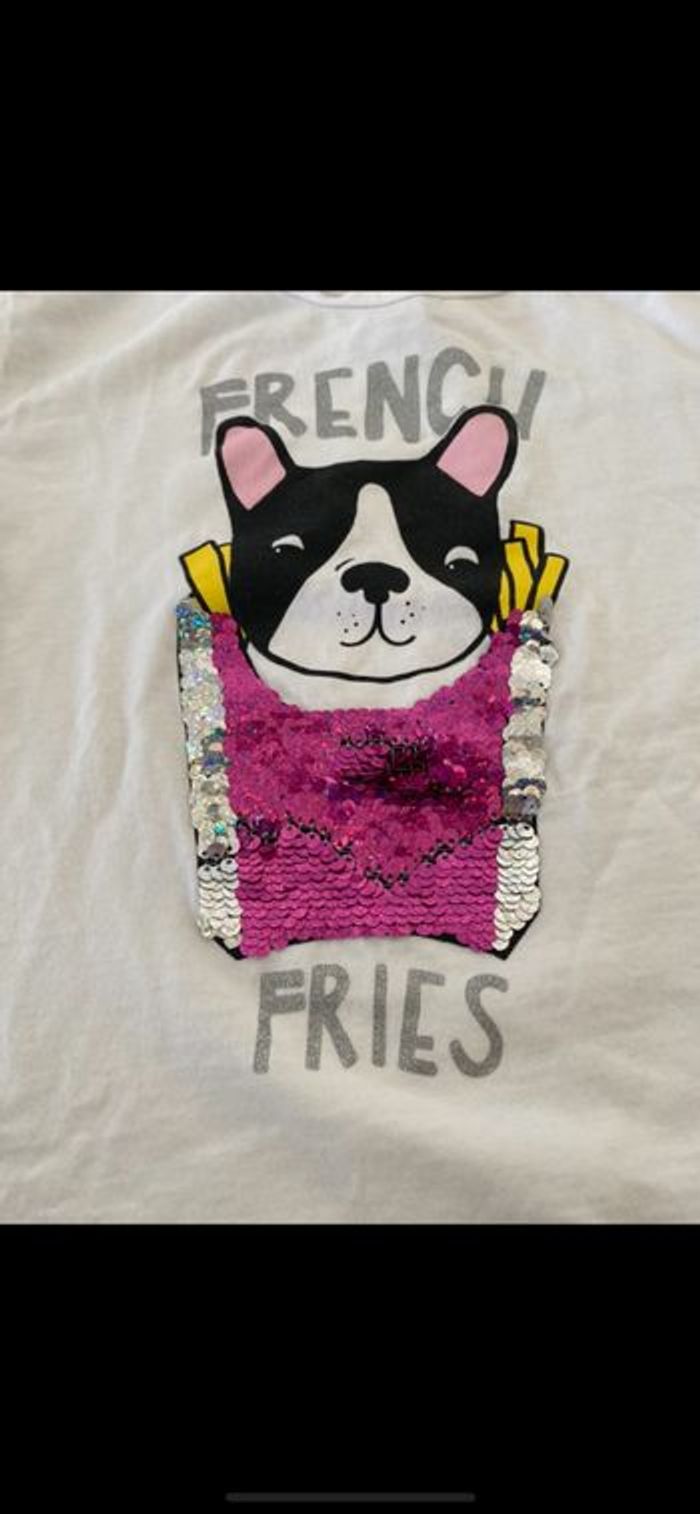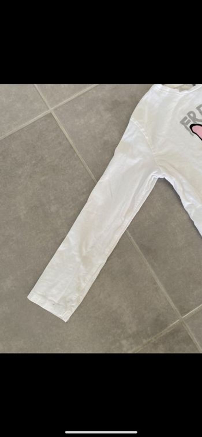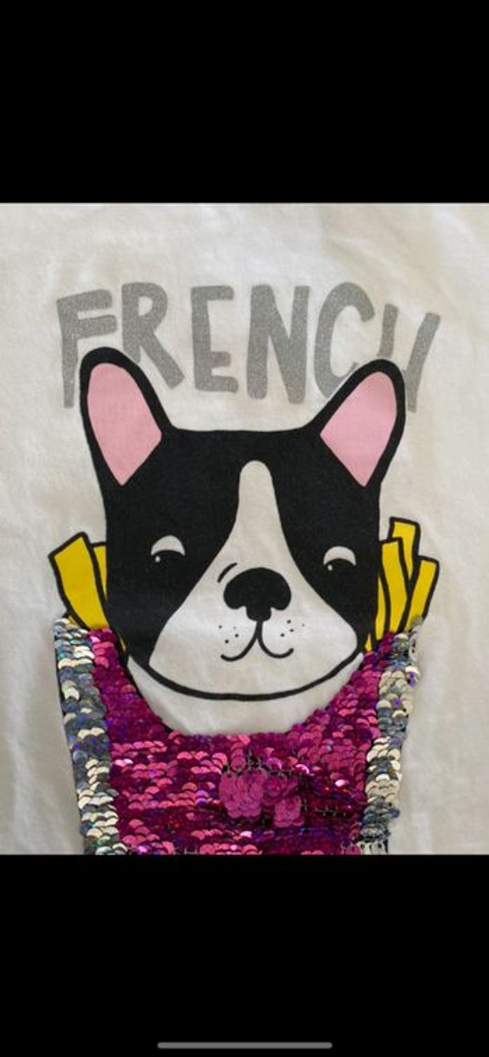 Très jolie avec ses sequins. Petites traces de feutre sur la manche. Je l'ai vu en prenant la photo. Partira au détachant. 118 cm. Taille 6-7 ans. N'hésitez pas à me suivre car encore beaucoup de vêtements fille (du1 mois à 8 ans), des vêtements garçon (du 1 mois au 12 mois pour le moment). Beaucoup de 18 mois à poster si besoin j'envoie des photos. Des chaussures. Énormément de jouets et livres. Maison non-fumeurs et sans animaux même si je les adore. Il n'y aura pas de poils ou d'odeur désagréable. Vous recherchez quelques choses, demandez mol. Je reponds tres rapidement. Bon shopping 😊