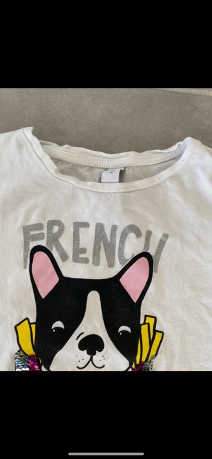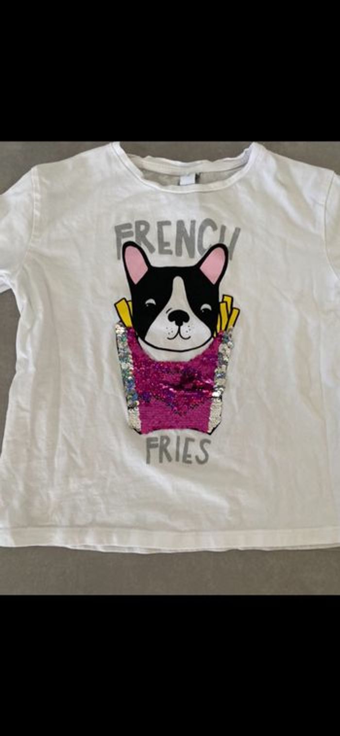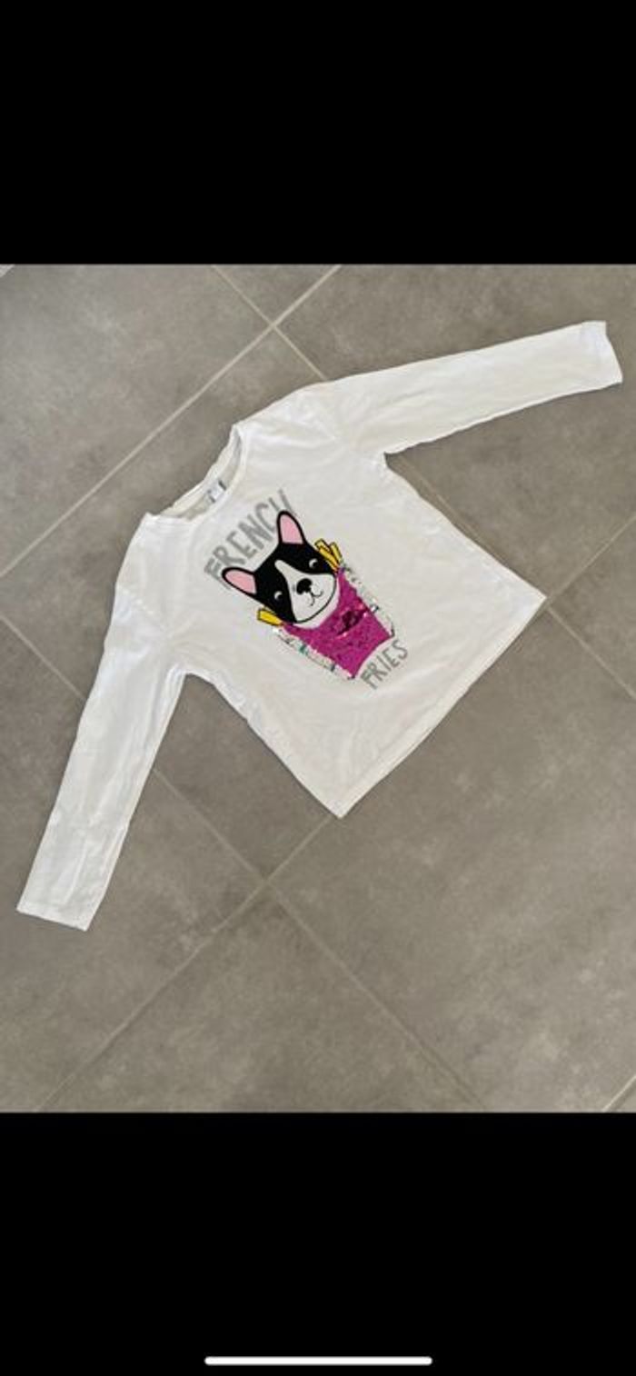 Très jolie avec ses sequins. Petites traces de feutre sur la manche. Je l'ai vu en prenant la photo. Partira au détachant. 118 cm. Taille 6-7 ans. N'hésitez pas à me suivre car encore beaucoup de vêtements fille (du1 mois à 8 ans), des vêtements garçon (du 1 mois au 12 mois pour le moment). Beaucoup de 18 mois à poster si besoin j'envoie des photos. Des chaussures. Énormément de jouets et livres. Maison non-fumeurs et sans animaux même si je les adore. Il n'y aura pas de poils ou d'odeur désagréable. Vous recherchez quelques choses, demandez mol. Je reponds tres rapidement. Bon shopping 😊