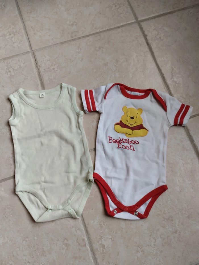 Lot de 2 bodies • 1 manches courtes Winnie l'ourson • 1 sans manche vert Taille 3 mois Très bon état