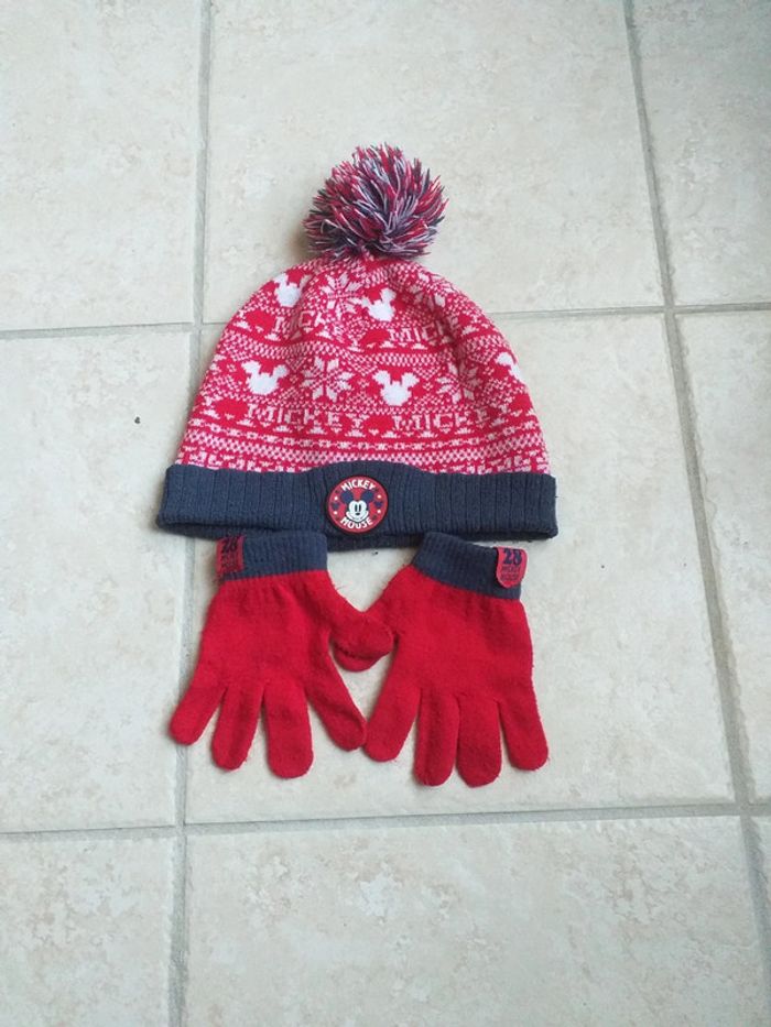 Ensemble bonnet et gants Mickey Coloris rouge/Bleu/Blanc Très bon état Marque Disney Bonnet taille 54cm donc pour un enfant de 4/5 ans