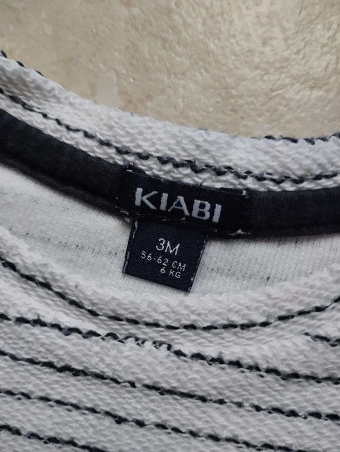 Pull blanc avec des lignes bleues 3 mois Kiabi Très bon état