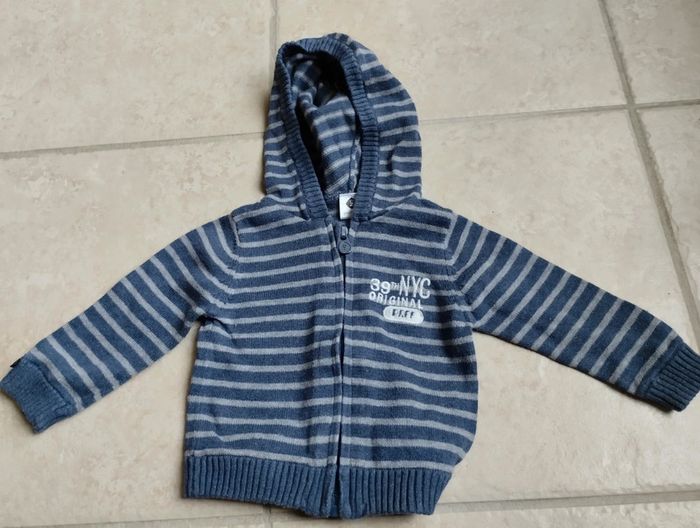 Veste bleue et grise à rayures 3 mois Grain de blé Très bon état