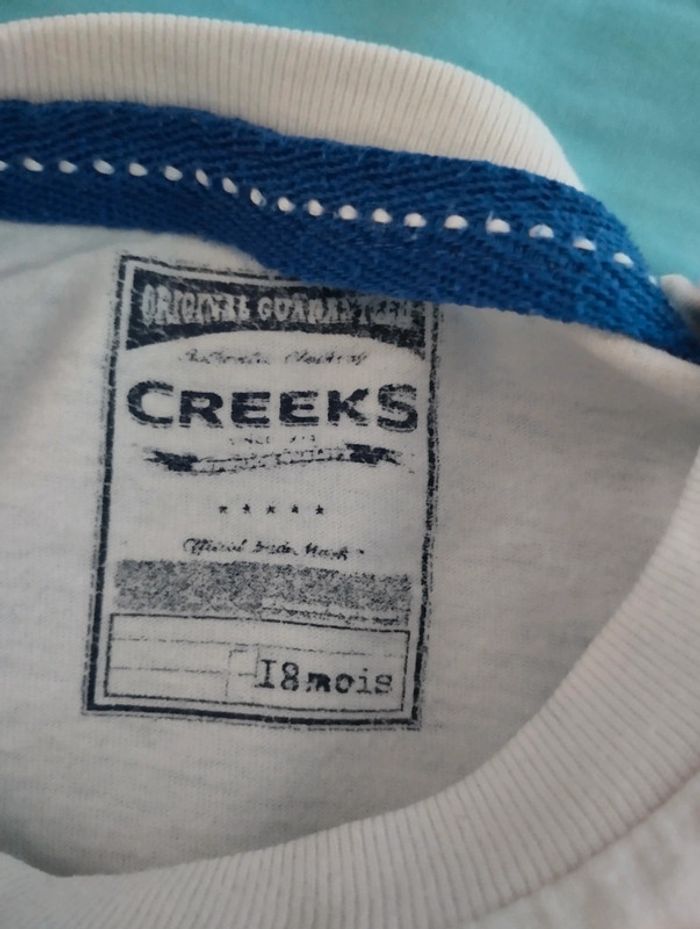 T-shirt manches longues blanc avec 2 boutons sur l'épaule gauche 18 mois Creeks Très bon état