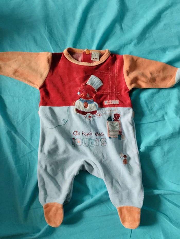Pyjama bleu, rouge et orange 1 mois Très bon état