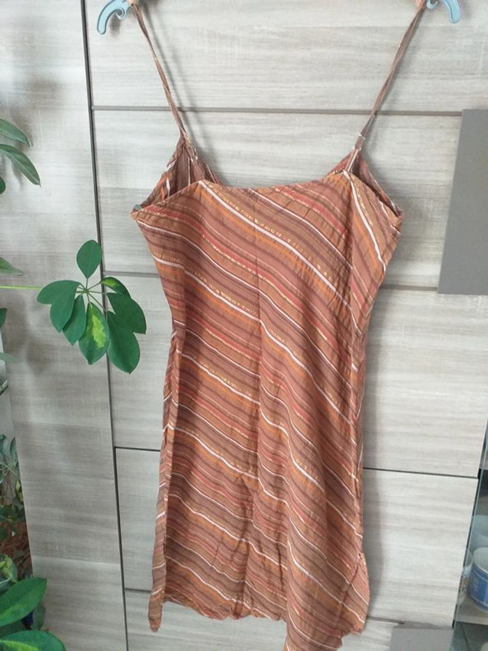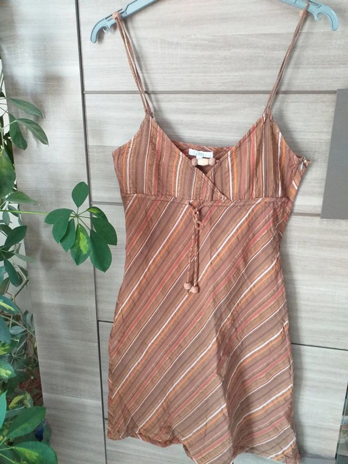Robe été fines bretelles Les bretelles sont réglables Matière 99,5% coton et 0,5% metalised fibre Très bon état Noté taille 42 mais plutôt taille 40