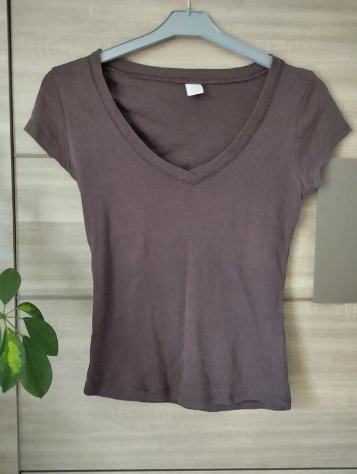 T-shirt manches courtes couleur taupe Taille S Camaïeu Très bon état