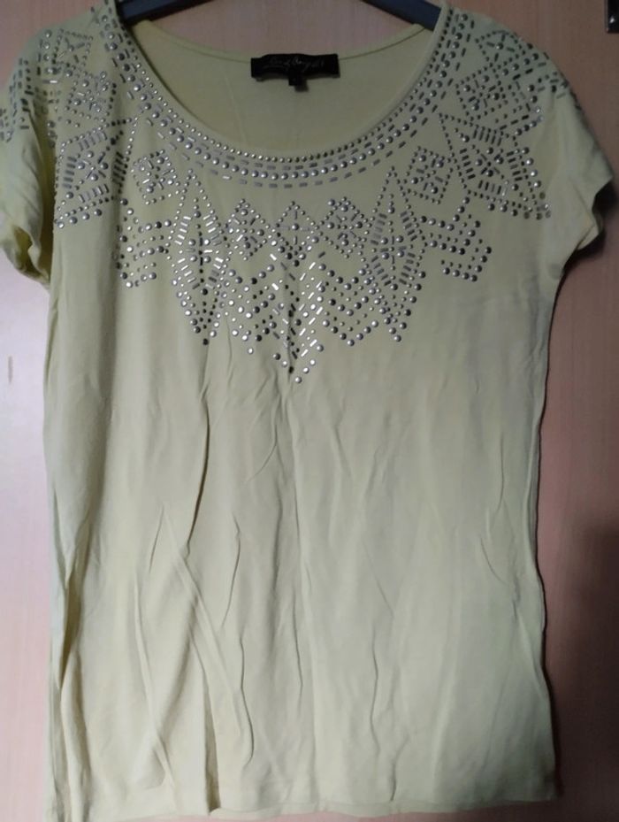 T-shirt manches courtes jaune avec des strass Taille S C&A Très bon état