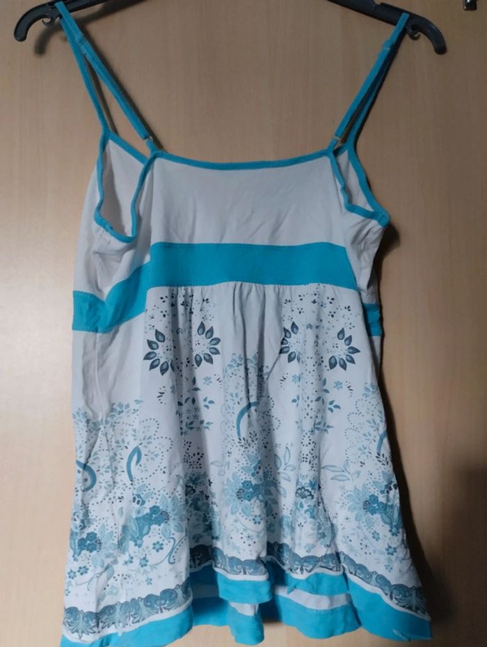 Débardeur bleu et blanc avec dessins style nature Taille M C&A Très bon état