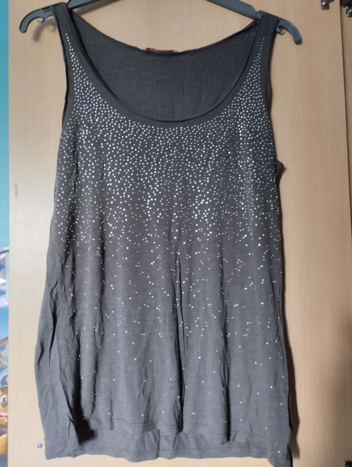 Débardeur gris avec des strass Taille L Camaïeu Très bon état
