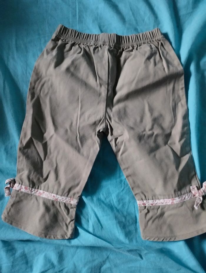 Pantalon avec une fleur sur la jambe gauche et un nœud à chaque jambe 12mois Très bon état