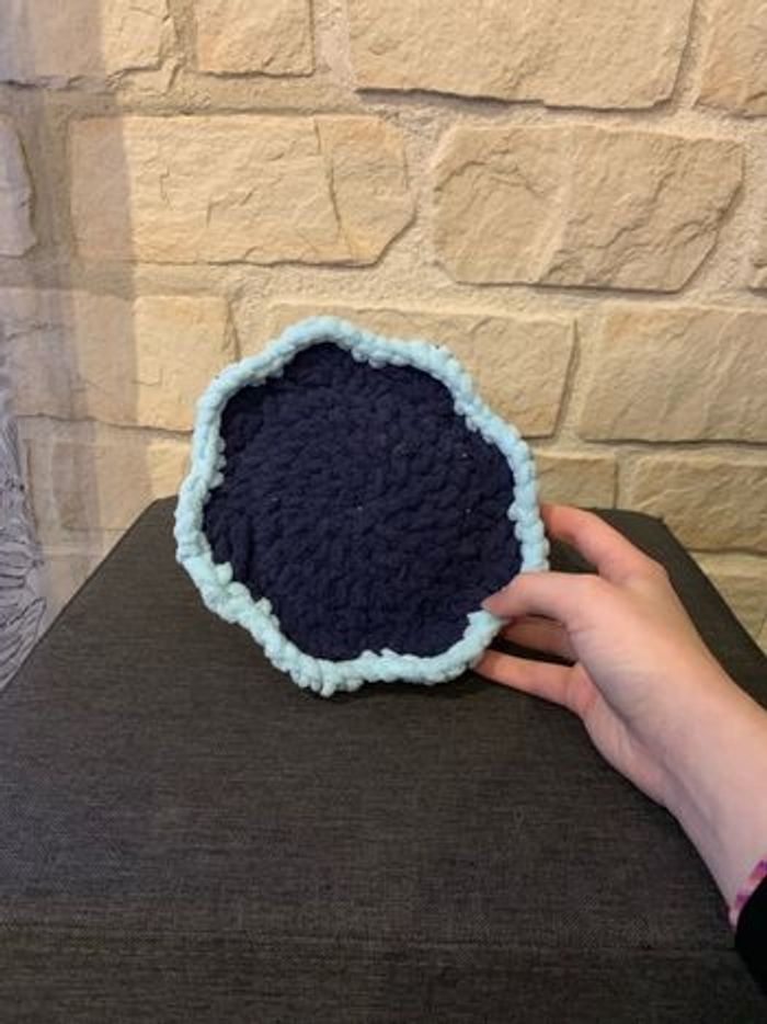 Poulpe bleu et bleu claire fais au crochet en laine chenille
