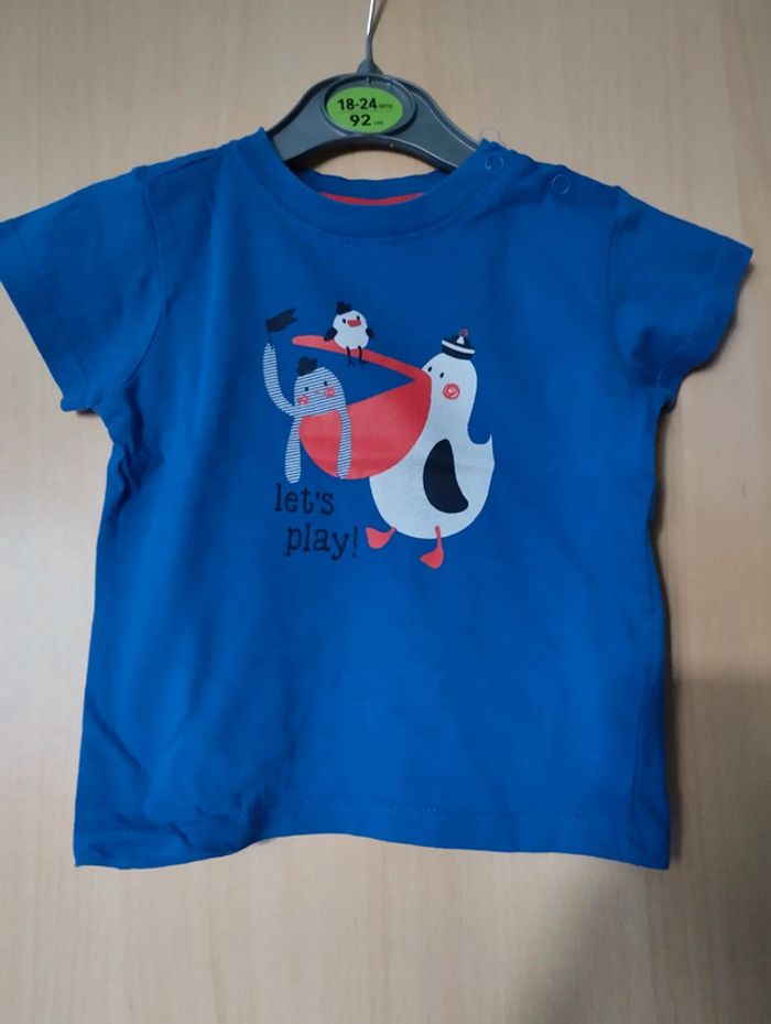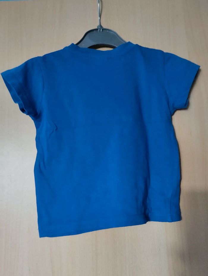 T-shirt manches courtes bleu avec deux pressions sur l'épaule gauche 18 mois Très bon état