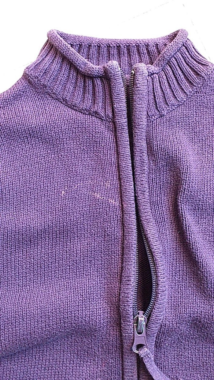 Lot 2 gilets ( le 3ème, je le donne car petite tâche) 1 gris, 1 violet et 1 aubergine ( attention sur l'aubergine, il y a une tâche visible sur la dernière photo) Taille 4 ans Marque In extenso