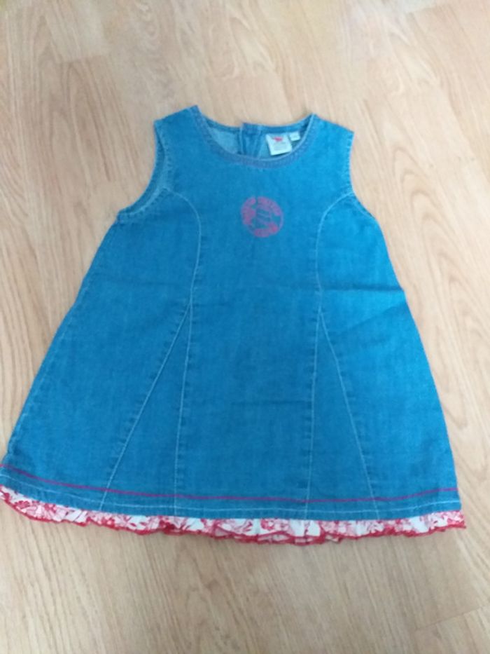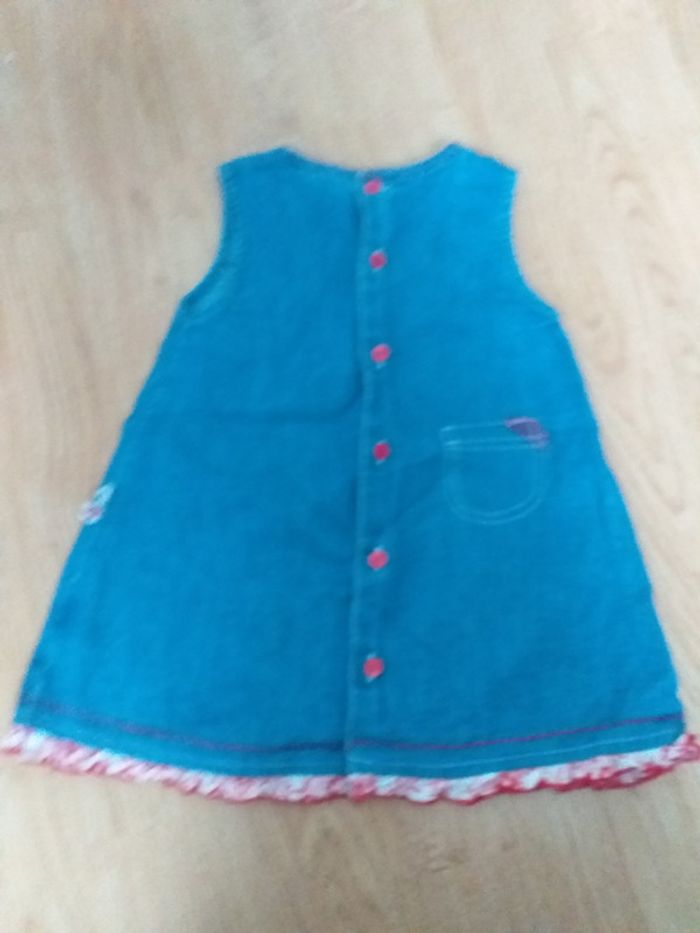 Robe style jeans Taille 24 mois ( 2 ans) Coloris bleu et rouge Fermeture par boutons au dos