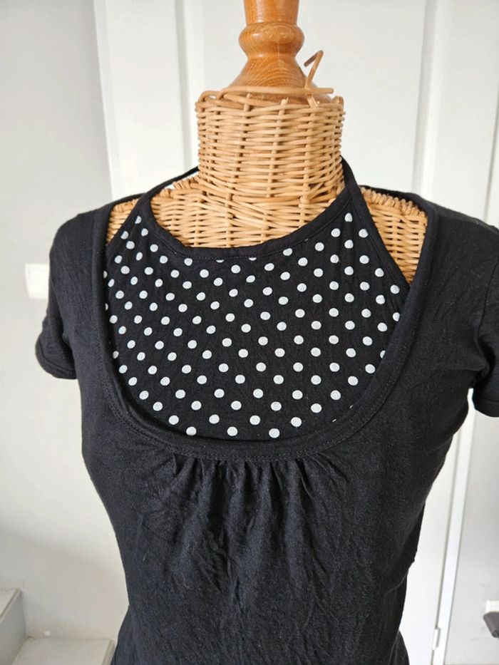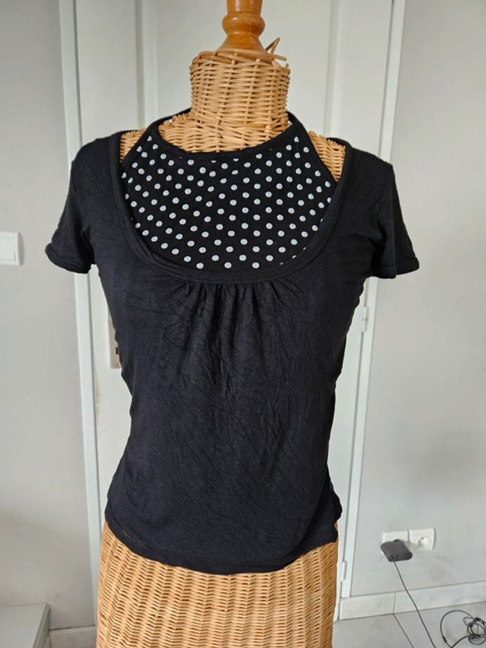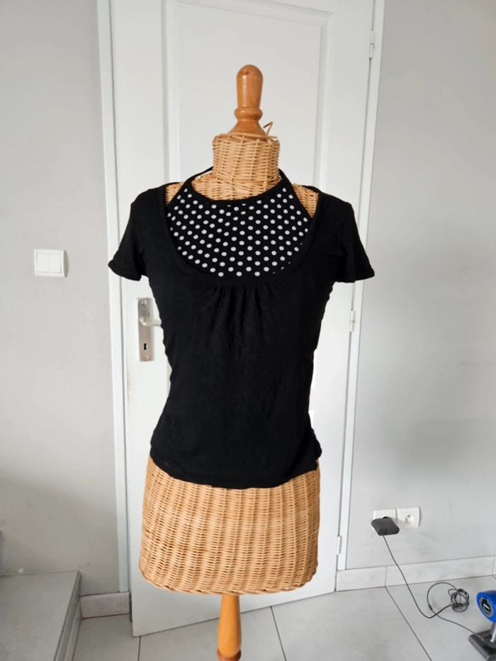 Haut femme Avec 2 effets ,T-shirt et autre haut dessous Noir à pois blanc Taché sur le bas cf photo N'hésitez pas à aller voir mes autres ventes classées par #eloio #eloiofemme #eloiofemmem