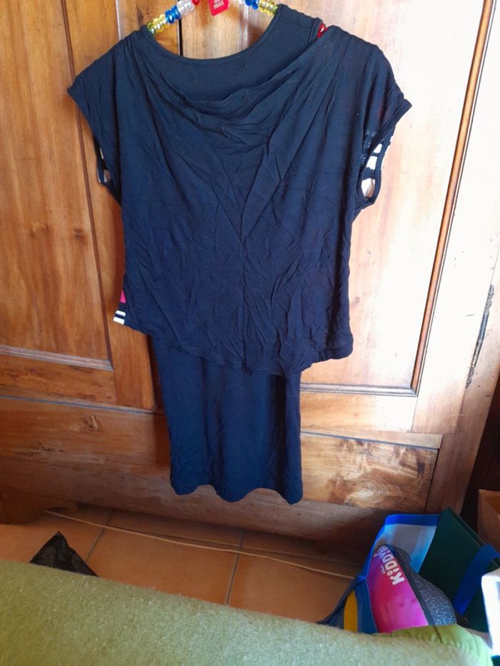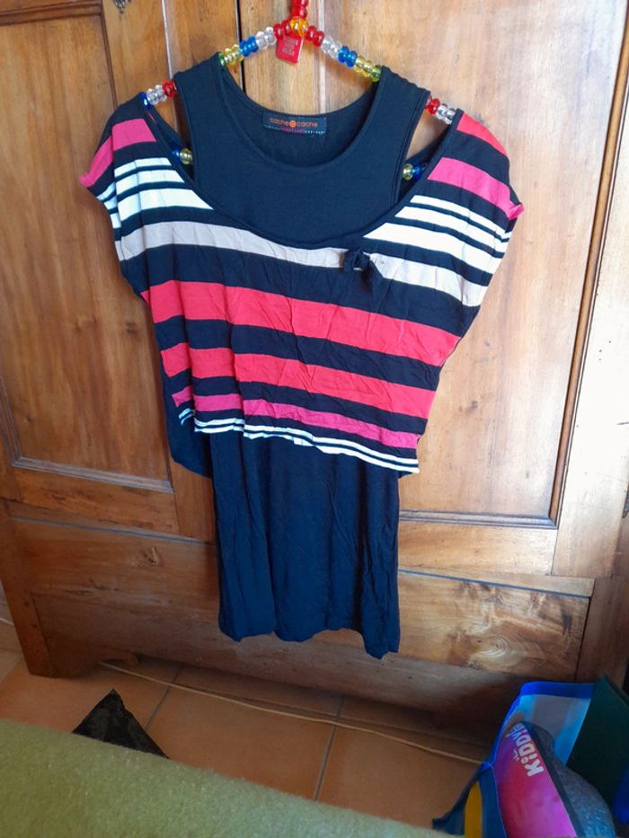 Peu porté debardeur noir + t shirt court rayé à mettre par dessus.
