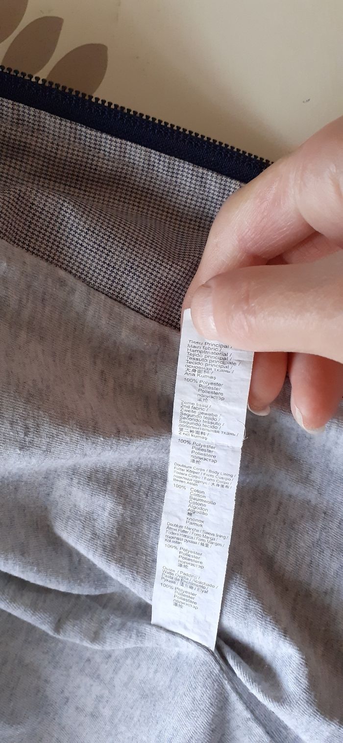 Veste coupe vent à capuche Double fermeture voir photo Voir photos pour petit trou a côté de la marque puis le bas des manches usées Voir photo pour les matières
