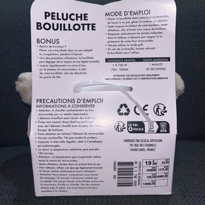Bouillotte Lulu castagnettes, à faire chauffer au micro-ondes , neufs acheter 20€