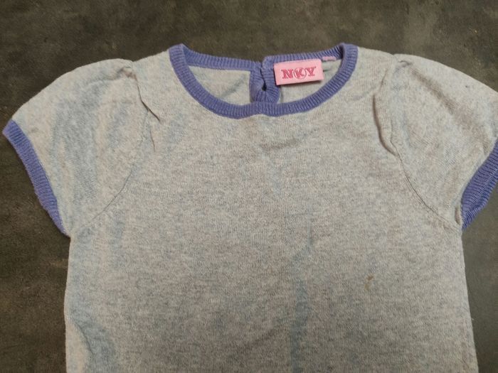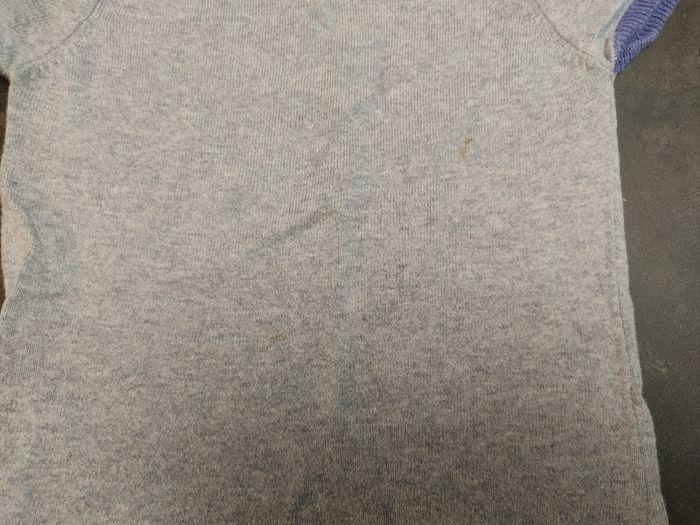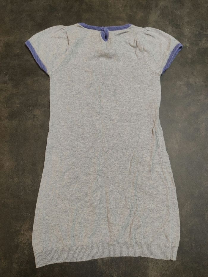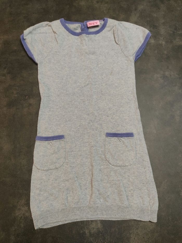 robe grise manche courte Idéale pour la mi saison 2 poches. Pas de taille mais je l évalue à du 5 ou 6 ans. Défaut= 2 tâche sur le devant. Voir photo
