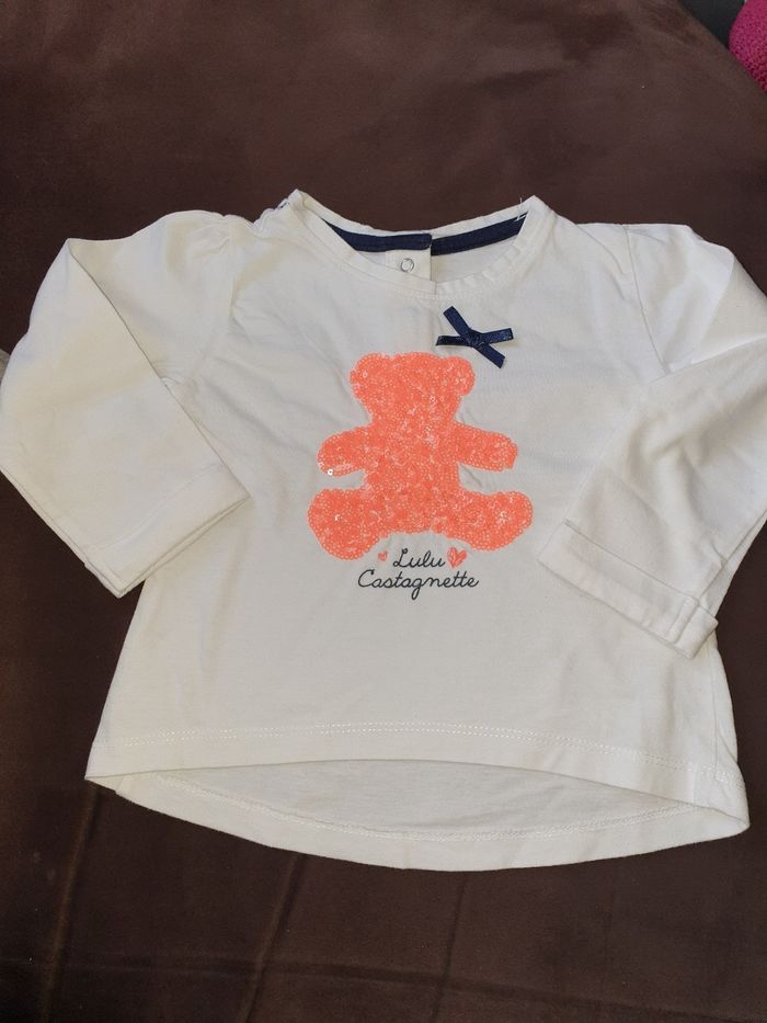 T-shirt manches longues motif ourson Lulu Castagnette en sequins en parfait état. Taille 18 mois marque Lulu Castagnette #18moissevy57