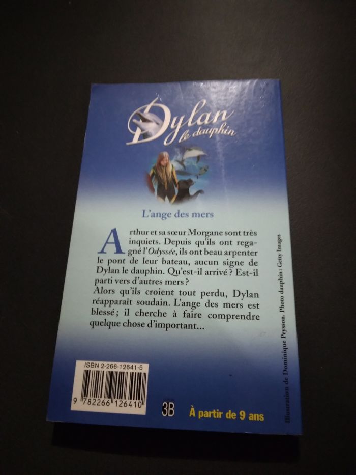 Roman de "Florence Reynaud" Dylan le dauphin=> l'ange des mers Pour enfant à partir de 9ans Voir les défauts sur la page de couverture. C'est pas grand chose. Prix neuf=> 6.90€ Je le vend au prix de 1€ D'autres livres pour bébés enfants et adultes en vente dans mon dressing