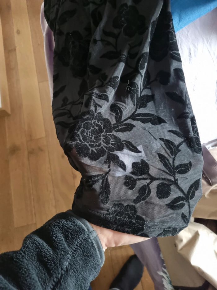 Neuve Motif floral au touché doux velours Moulante, manche longue, col rond. S'enfile directement Possède une doublure incorporée. Marque Zéza fashion Taille L/XL